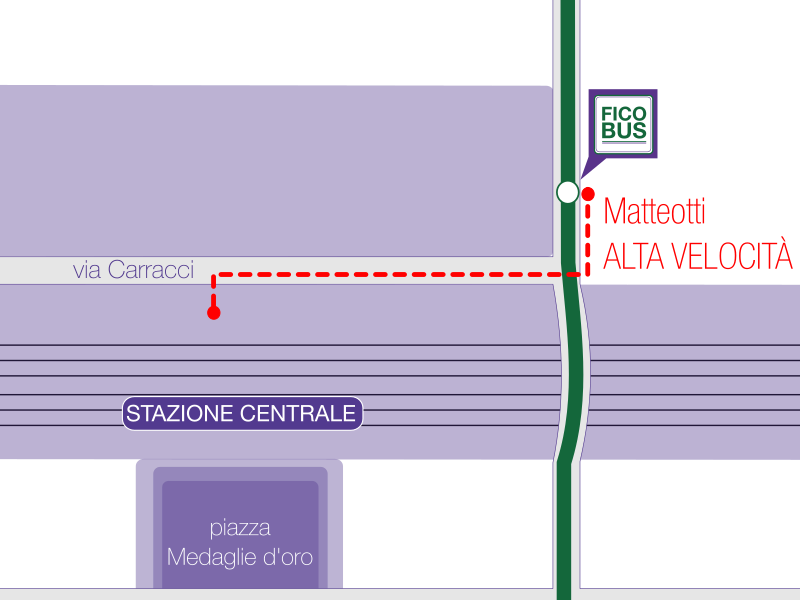 È possibile prendere il BUS in direzione FICO anche dalle fermate centrali (XX settembre, Indipendenza, Rizzoli, Piazza Minghetti, Piazza Malpighi e Marconi)